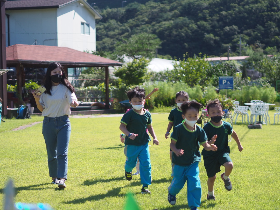 넓은 잔디구장에서 마음껏 뛰어놀면서 신체를 단련하며, 건강하고 튼튼한 체력을 기를 수 있도록 합니다.
