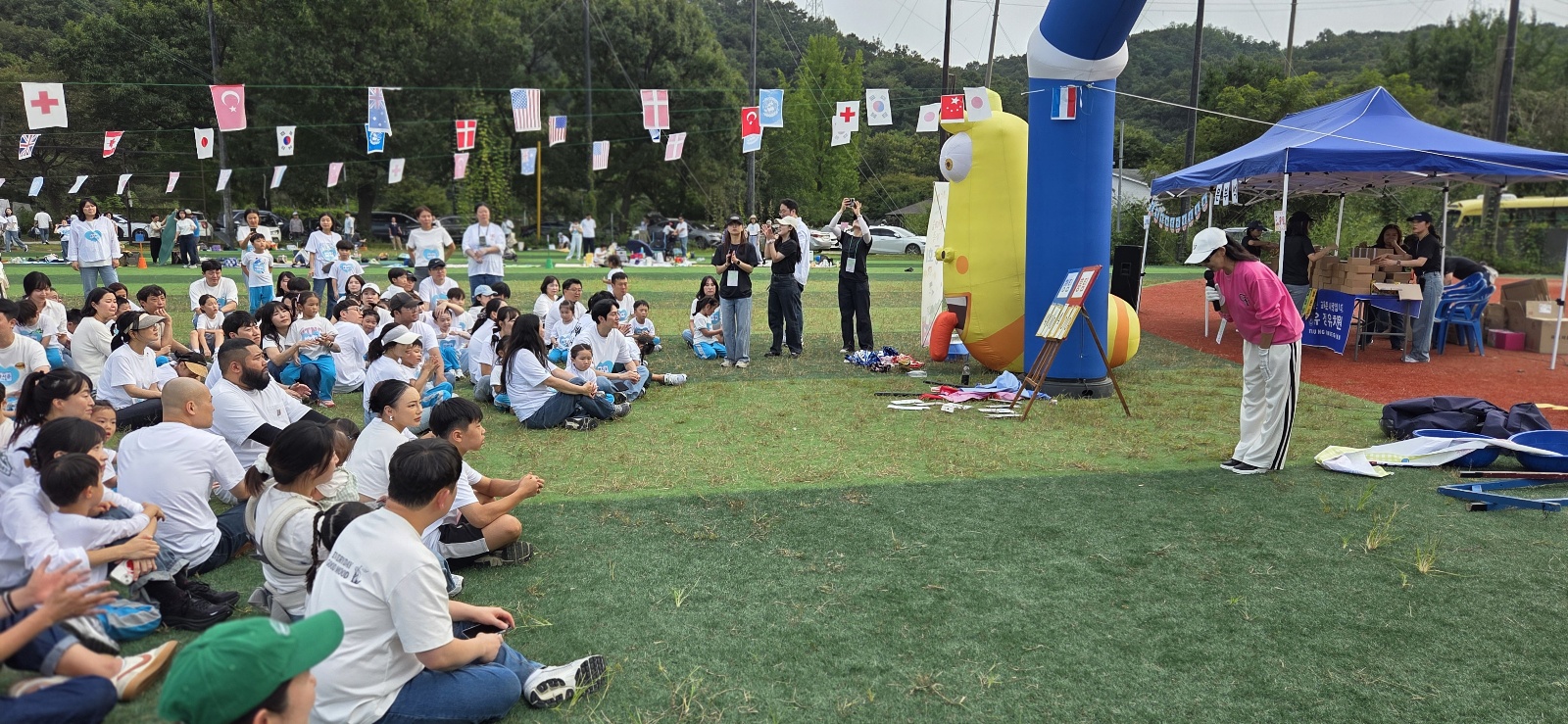 | 맑고 화창한 가을하늘 아래 유정 한마음 가족운동회가 진행되었어요.은평야구장 초록초록 잔디위에서 유정의 많은 가족분들이 참여하여 즐거운 시간을 보냈습니다.열정적으로 참여해 주신 모든 분들께 진심으로 감사드립니다.아이들의 함성과 웃음소리가 가득했던 하루!! 학부모님들의 응원과 협력으로 더욱 특별했습니다.함께 한 모든 순간이 아이들의 마음에 소중한 추억으로 남았을거라 믿습니다. 뜨거운 햇살로 기다리는 동안 더위에 힘들기는 했으나 아이들과 함께하는 시간을 이해와 웃음으로 채워주셔서 감사합니다. 함께 할 수 있어서 너무 행복했습니다*^^* |