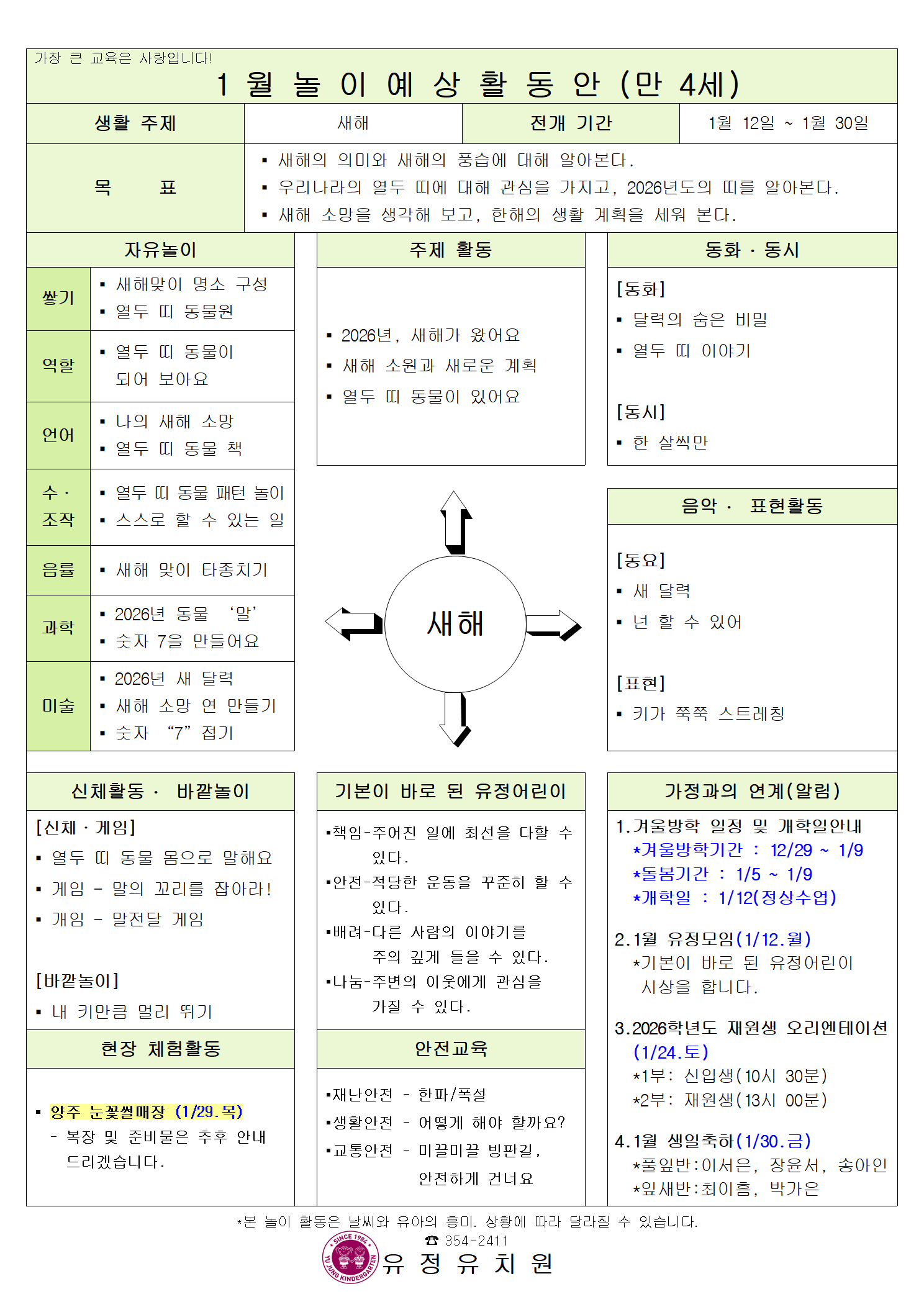 | 제목 | 만 4세 1월 놀이활동안 | ||